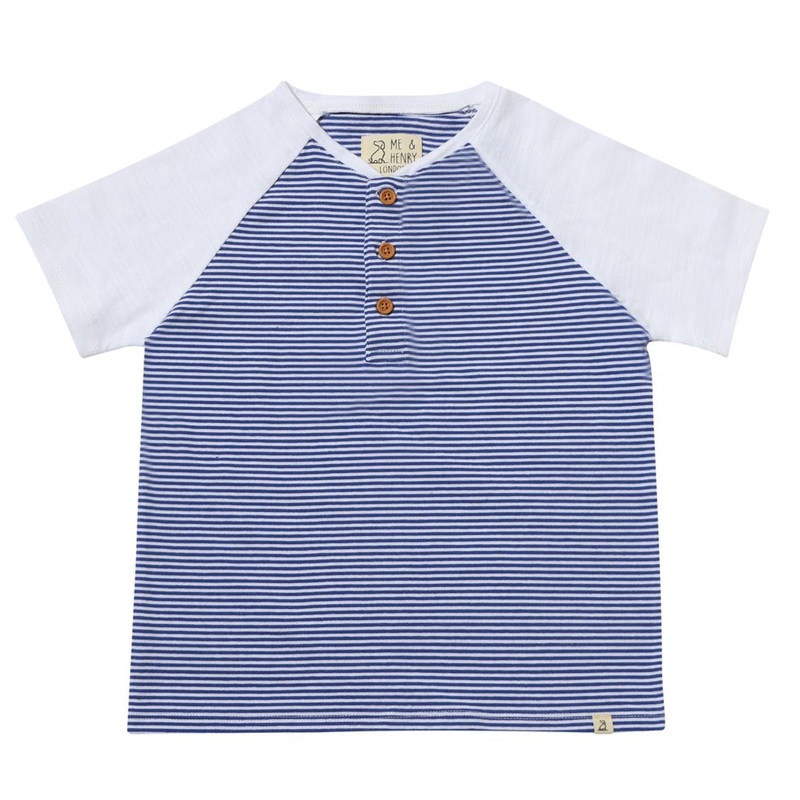 The royal blue and white stripe raglan henley is a fresh and stylish choice for your little guys wardrobe!Featuring royal blue and white stripes with a sporty raglan sleeve design, this shirt blends a laid-back vibe.The Henley neckline with a three-button