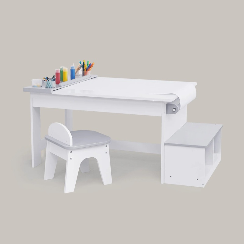 - INCLUDED: This complete artist set includes a table, art tray, storage bench and chair.