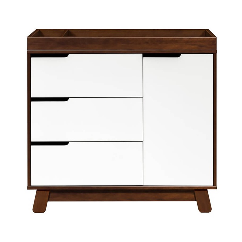 Get more from your nursery furniture with the versatile Hudson Changer Dresser. Combining a changing table, three drawer dresser, and storage cabinet all in one solid and practical package, the Hudson Changer Dresser is a modern space-saving convenience. Complementing the mid-century modern-inspired Hudson 3-in-1 Convertible Crib, the dresser comes in three chic finishes including two new takes on two-tone for the nursery. Truly built for baby, the removable changer tray’s raised sides help keep your little one safe, and an anti-tip kit is included for further security. Keep baby’s clothes and necessities organized in the smooth-opening drawers, while stop mechanisms prevent them from being pulled all of the ways out. The storage cabinet closes gently and includes an adjustable shelf, perfect for keeping diapers and wipes handy.