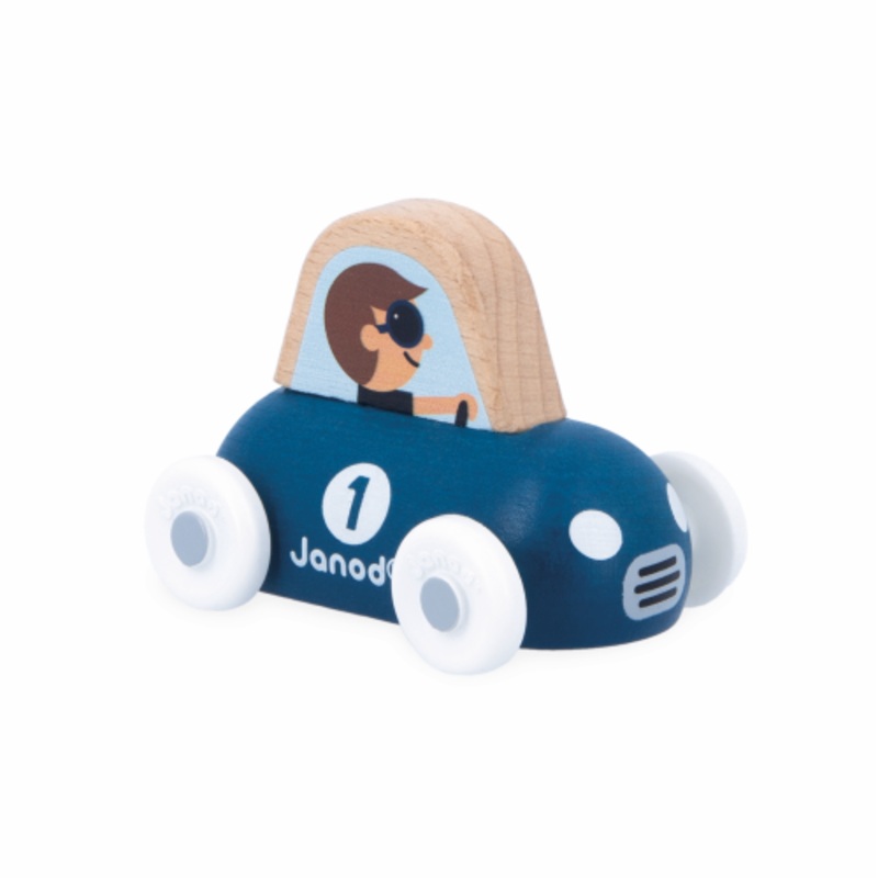 “Ready for the next pin?” This little wooden car is suitable for children as young as 12 months. With his sports car, this amateur driver negotiates bends and admires the valley scenery! Its shape has been specially designed for little ones, who can easily hold it by the top to make it roll. The vehicles are perfect for inventing stories and developing the imagination! Babies first have fun rolling them around, then older children tell all kinds of adventures, developing their vocabulary and creativity. This little Janod car is part of our Cross Roads collection: a series of playmats with circuits, made even more fun when complemented by our cube sets and small wooden vehicles. The sports car is particularly suited to the Mountain Valley playmat, but goes equally well with other mats in the range. It’s made from wood from sustainably managed forests. “Now that’s what I call driving!”