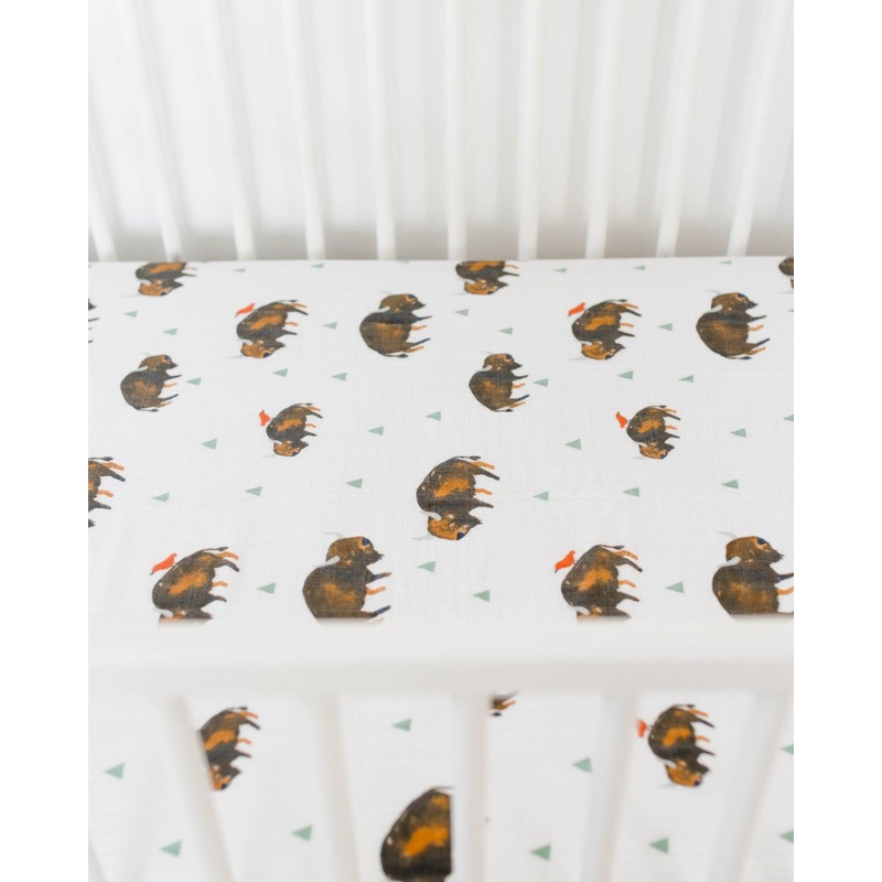 100% cotton muslin fitted crib sheetstandard size: 52" x 28" x 9"lightweight and breathablesofter with each washoriginal prints to fit your unique stylemachine washable
